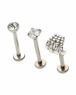 Outlet π― Multi-Pack CZ Silvertone Flower Cartilage Barbells 3 Pack – 16 Gauge β€οΈ