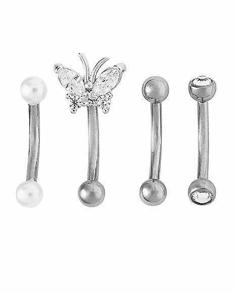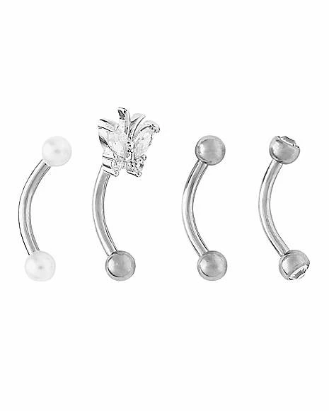 Flash Sale ✨ Multi-Pack CZ Butterfly and Pearl-Effect Titanium Curved Barbells 4 Pack – 16 Gauge 🥰