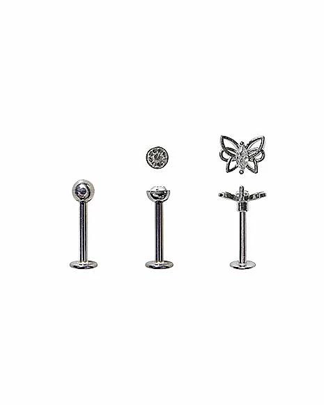 Best Pirce π Multi-Pack CZ Butterfly Labret Lip Rings 3 Pack – 16 Gauge π