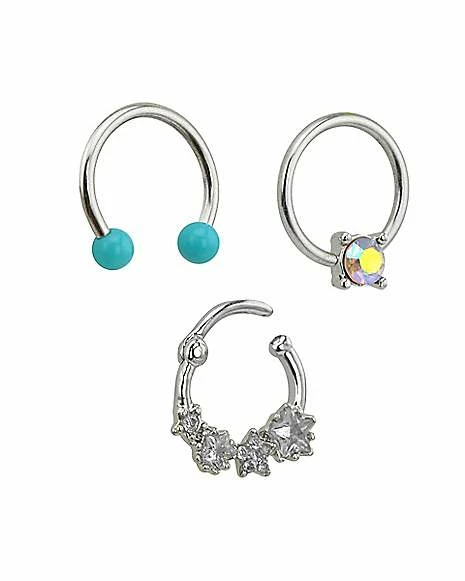Discount ✨ Multi-Pack CZ Captive Horseshoe and Septum Rings 3 Pack – 16 Gauge ✨