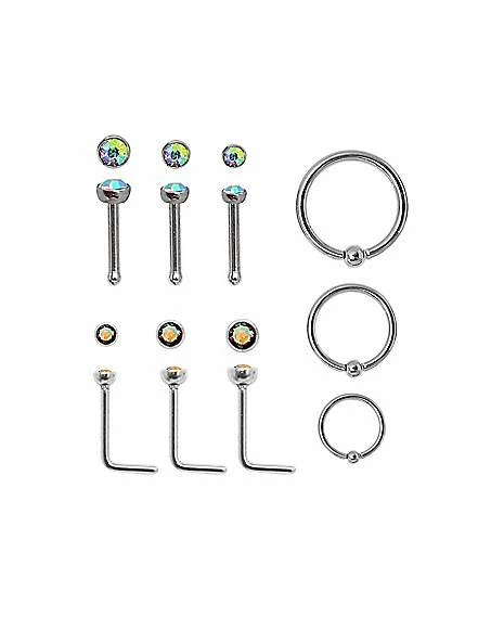 Flash Sale 🤩 Multi-Pack CZ Captive Rings Nose Pins and L-Bend Nose Rings 9 Pack – 22 Gauge ⌛