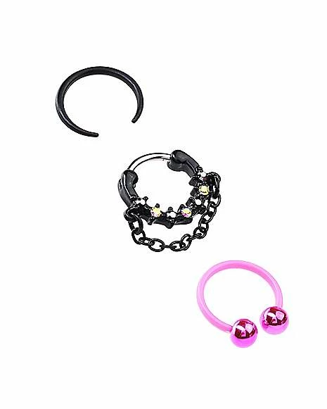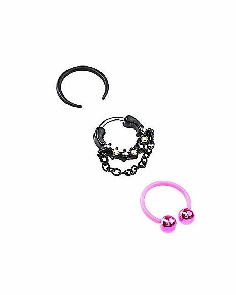 Brand new ⌛ Multi-Pack CZ Chain Dangle Pincher and Horseshoe Septum Rings 3 Pack – 16 Gauge ✔️