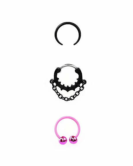 - 3 Septum rings (1 pincher, 1 chain dangle clicker clicker, 1 horseshoe)