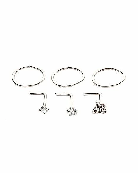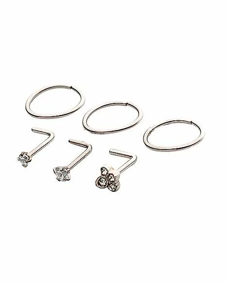 Buy π― Multi-Pack CZ Cluster L-Bend and Hoop Nose Rings 6 Pack – 20 Gauge β€οΈ