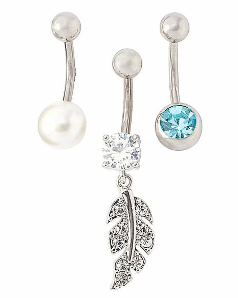 Wholesale π Multi-Pack CZ Feather Dangle Belly Rings 3 Pack – 14 Gauge π