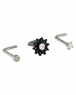 Buy π Multi-Pack CZ Filigree L-Bend Nose Rings 3 Pack – 20 Gauge π