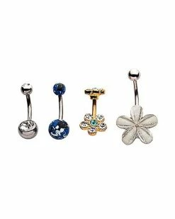 Best Pirce β€οΈ Multi-Pack CZ Flower and Splatter Belly Rings 4 Pack – 14 Gauge π₯°