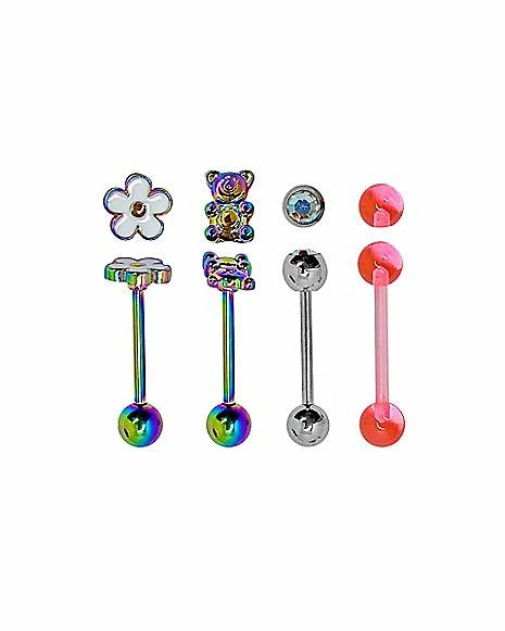 Best Sale 𧨠Multi-Pack CZ Flower Bear Barbells 4 Pack – 14 Gauge π