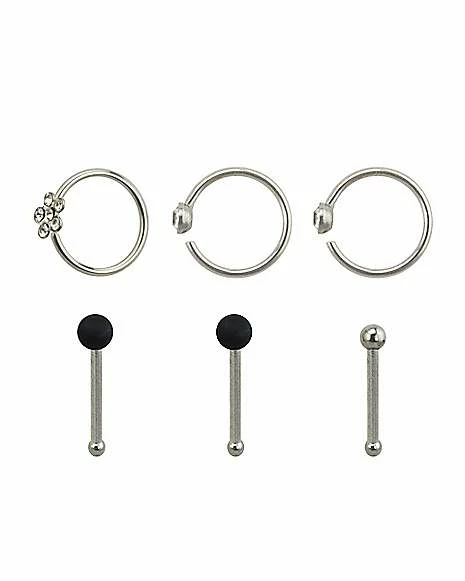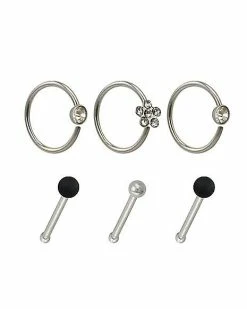 Hot Sale ⌛ Multi-Pack CZ Flower Hoop Nose Rings and Bone Nose Rings 6 Pack – 20 Gauge ✔️