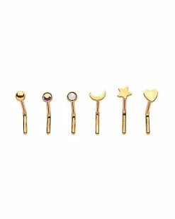 Brand new β Multi-Pack CZ Gold Plated Moon Star and Heart L-Bend Nose Rings 6 Pack – 20 Gauge π