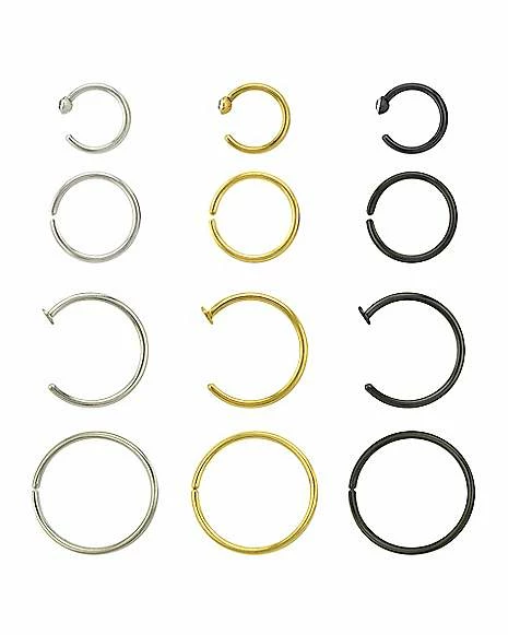 Be the first to review “Hot Sale π Multi-Pack CZ Goldtone and Black Hoop Nose Rings and Half Hoop Nose Rings 12 Pack – 20 Gauge π” Cancel reply