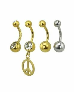 Wholesale π₯ Multi-Pack Goldtone Peace Dangle Belly Ring 4 Pack – 14 Gauge π₯