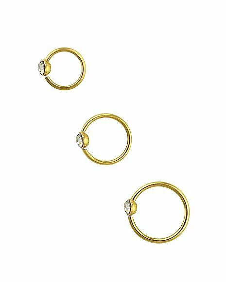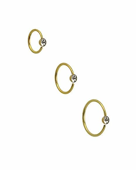 Flash Sale β Multi-Pack CZ Goldtone Hoop Nose Rings 3 Pack – 20 Gauge π