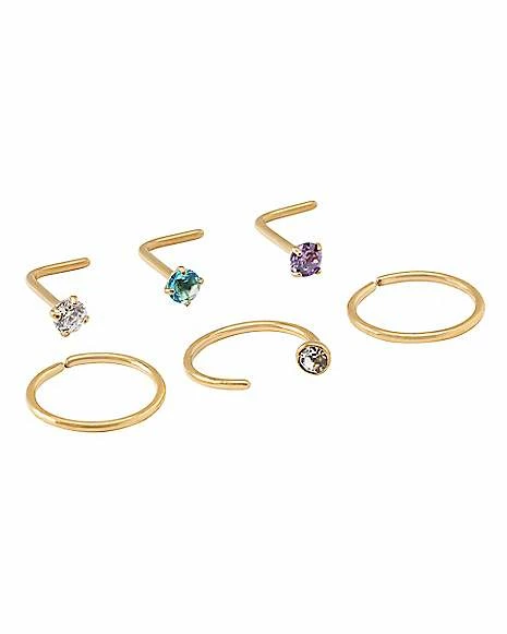 Flash Sale ⌛ Multi-Pack CZ Goldtone L-Bend and Hoop Nose Rings 6 Pack – 20 Gauge ❤️