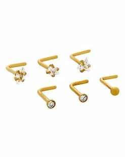 Outlet π Multi-Pack CZ Goldtone L-Bend Nose Rings 6 Pack – 20 Gauge π