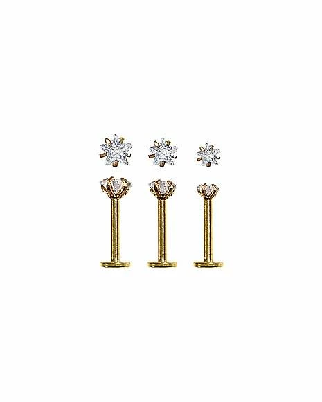 Wholesale π Multi-Pack CZ Goldtone Labrets 3 Pack – 16 Gauge π
