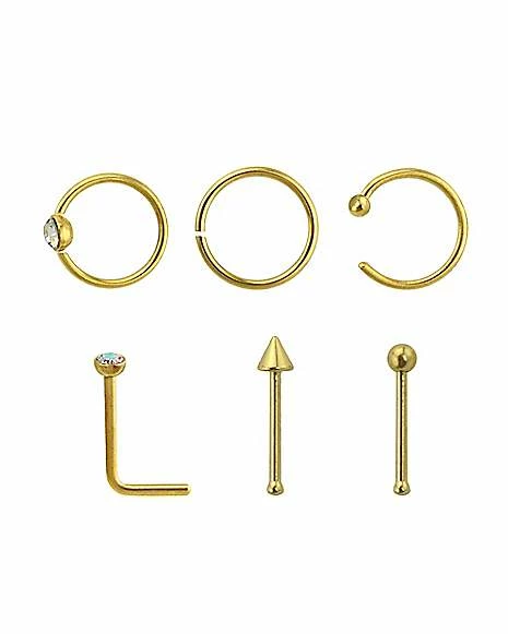 Deals π Multi-Pack CZ Goldtone Nose Pins and Hoop Nose Rings 6 Pack – 20 Gauge π