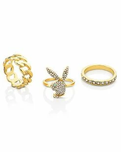Best deal π₯° Multi-Pack CZ Goldtone Playboy Bunny Rings – 3 Pack β