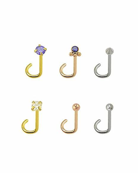 Wholesale π Multi-Pack CZ Goldtone Screw Nose Rings 6 Pack- 20 Gauge π
