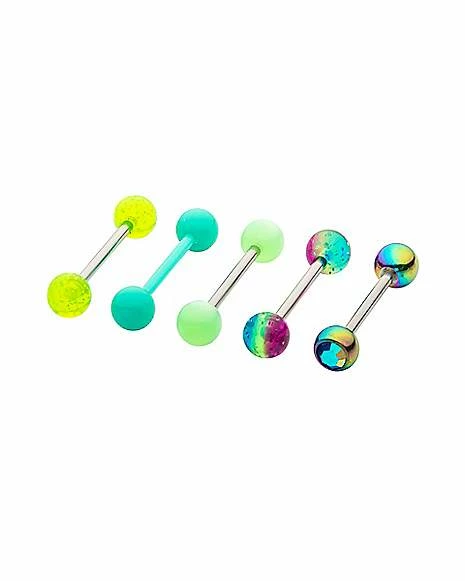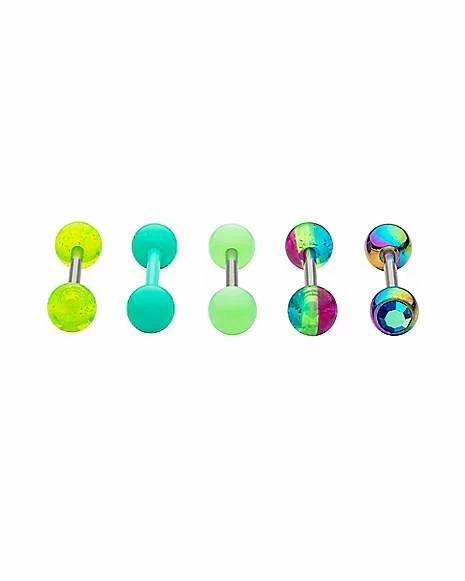 Deals π Multi-Pack CZ Green and Oil Slick Barbells 5 Pack – 14 Gauge β