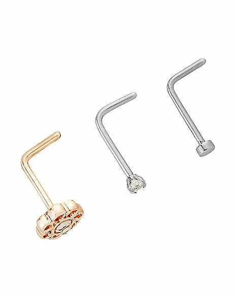 Wholesale ❤️ Multi-Pack CZ Groovy Flower L-Bend Nose Rings 3 Pack – 20 Gauge ❤️