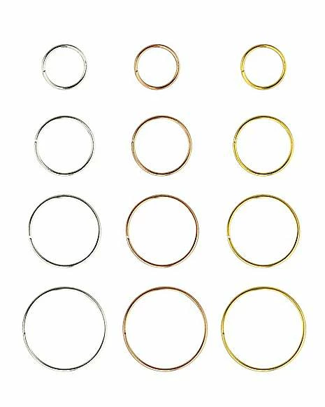 Cheap π Multi-Pack CZ Hoop Nose Rings 12 Pack – 22 Gauge π