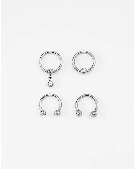 Wholesale π€© Multi-Pack CZ Horseshoe Rings and Dangle Captive Rings 4 Pack – 16 Gauge π₯