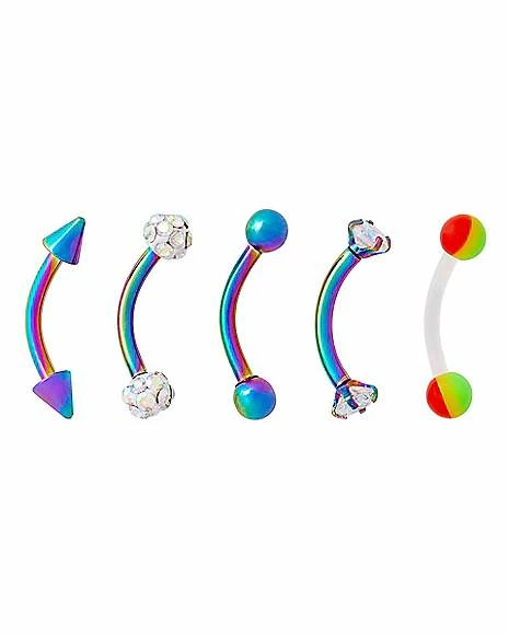 Promo π Multi-Pack CZ Iridescent Curved Barbells 5 Pack – 16 Gauge π