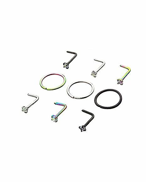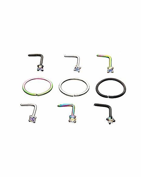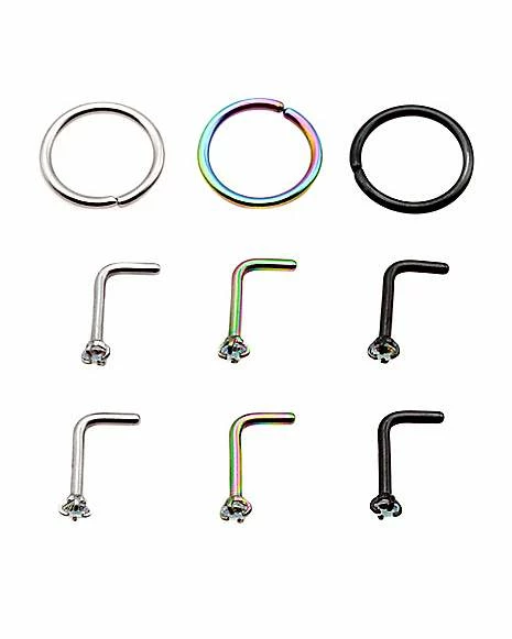 Top 10 π Multi-Pack CZ L Bend and Hoop Nose Rings 9 Pack – 20 Gauge π