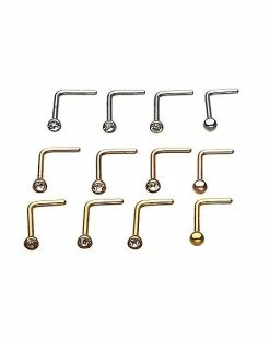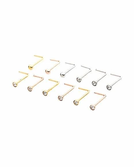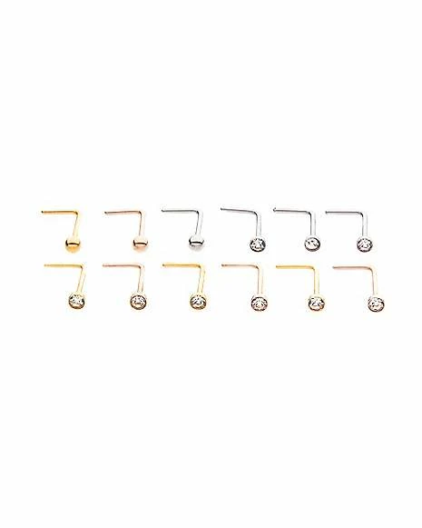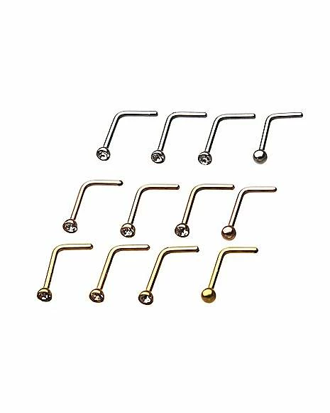 Cheap 𧨠Multi-Pack CZ L-Bend Nose Rings 12 Pack – 20 Gauge π₯