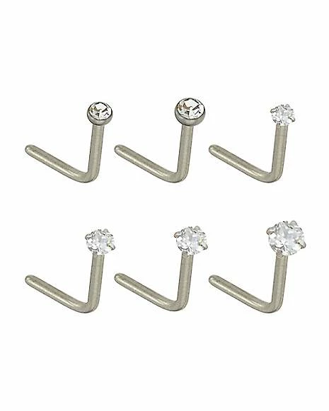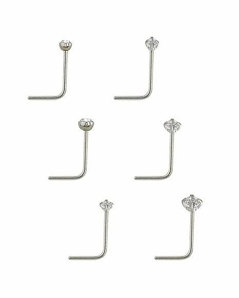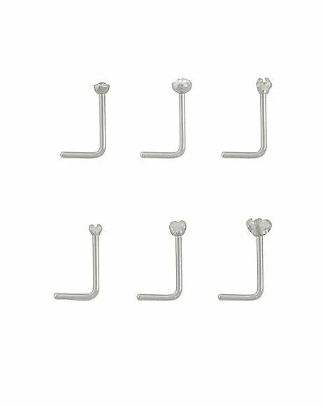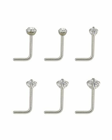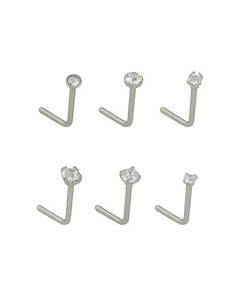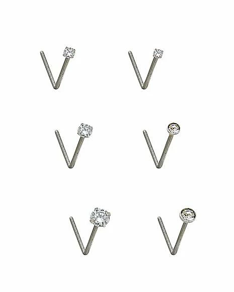 Cheapest ⌛ Multi-Pack CZ L-Bend Nose Rings – 6 Pack ✨