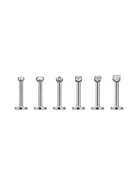 Outlet π₯ Multi-Pack CZ Labret Lip Rings 6 Pack – 16 Gauge π₯