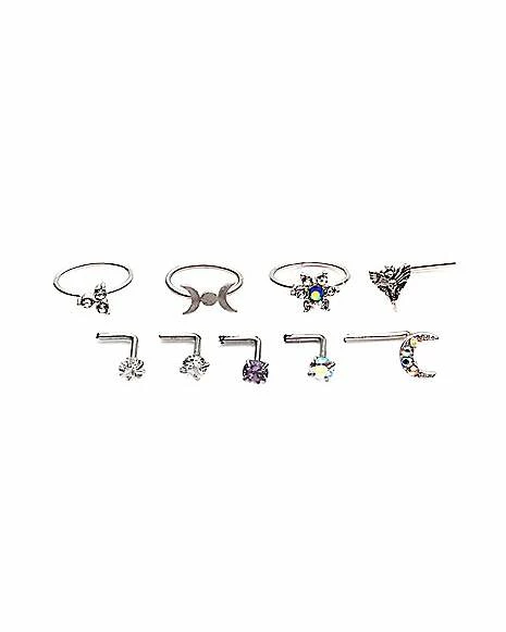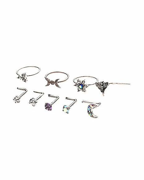Coupon π Multi-Pack CZ Moon and Star Hoops and L-Bend Nose Rings 9 Pack – 20 Gauge π€©