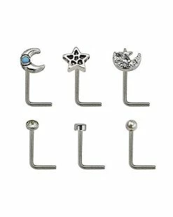 Buy β Multi-Pack CZ Moon and Star L-Bend Nose Rings 6 Pack – 20 Gauge π