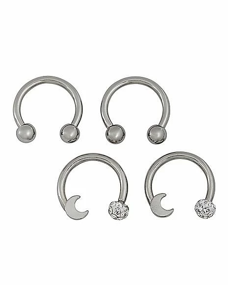 Cheap π Multi-Pack CZ Moon Horseshoe Rings 2 Pair – 16 Gauge π