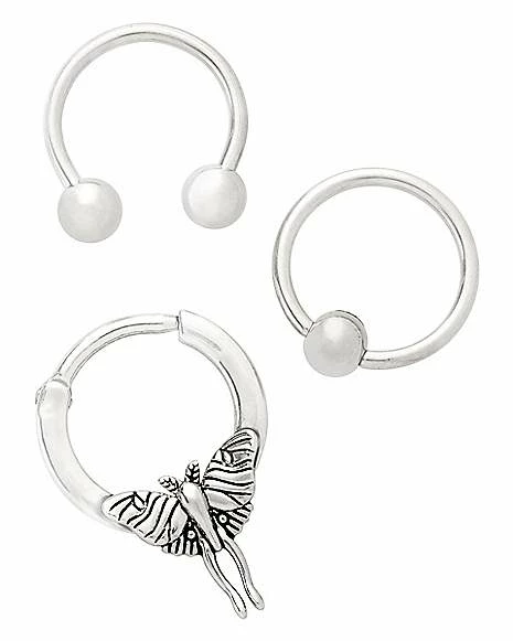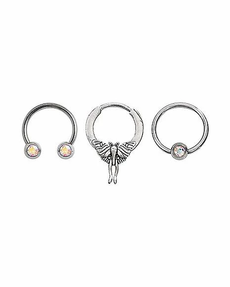 Cheap π Multi-Pack CZ Moth Silvertone Septum Rings 3 Pack – 16 Gauge π