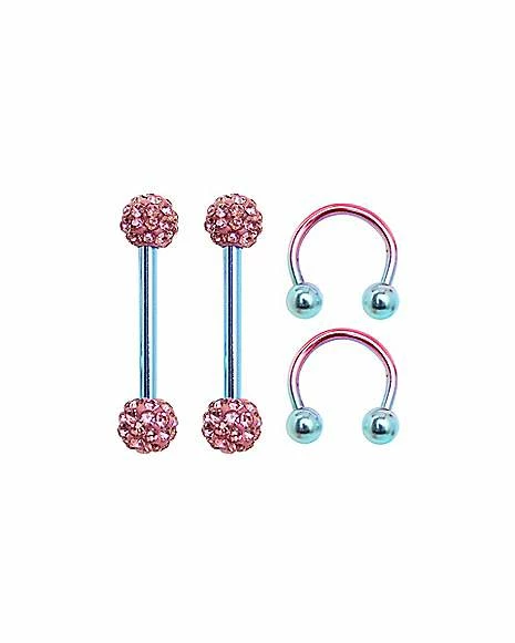 Promo π€© Multi-Pack CZ Nipple Barbells and Horseshoe Rings 2 Pair – 14 Gauge π€©