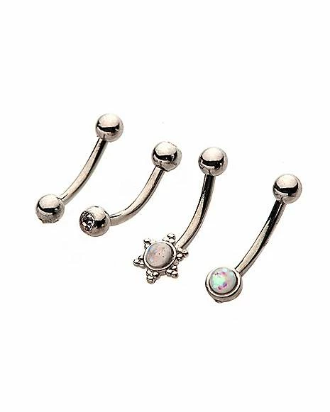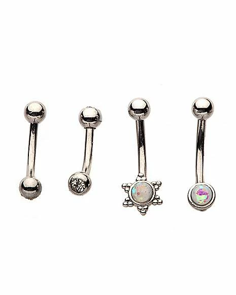 New π Multi-Pack CZ Opal-Effect Sun Curved Barbells 4 Pack – 16 Gauge π