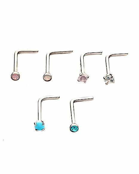 Best Pirce π Multi-Pack CZ Pink and Blue Gem L-Bend Nose Rings 6 Pack – 20 Gauge π€©