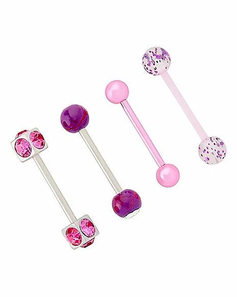 Cheapest π₯ Multi-Pack CZ Pink and Purple Barbells 4 Pack – 14 Gauge π₯°