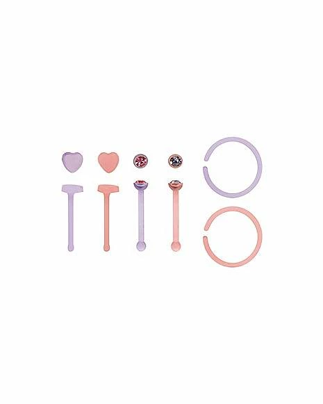 Budget π€© Multi-Pack CZ Pink and Purple Nose Rings 6 Pack – 20 Gauge π