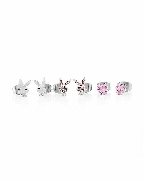 Cheap π Multi-Pack CZ Pink Playboy Bunny Heart Stud Earrings 3 Pack – 20 Gauge π§¨