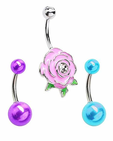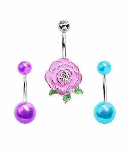 Best Pirce π Multi-Pack CZ Purple Flower Belly Rings 3 Pack – 14 Gauge π§¨