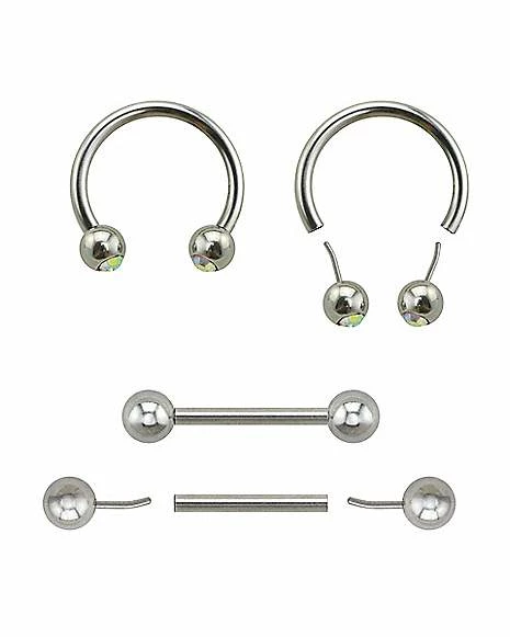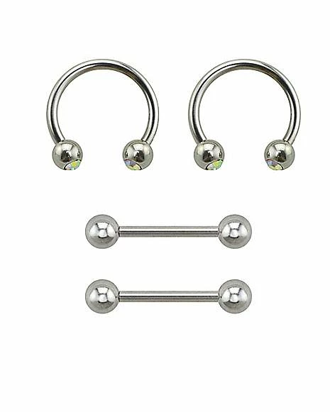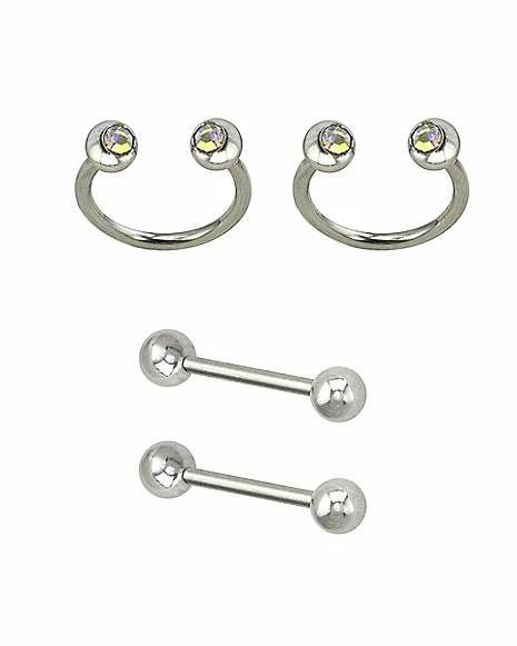 New π Multi-Pack CZ Push In Nipple Horseshoes and Nipple Barbells 2 Pair – 14 Gauge βοΈ