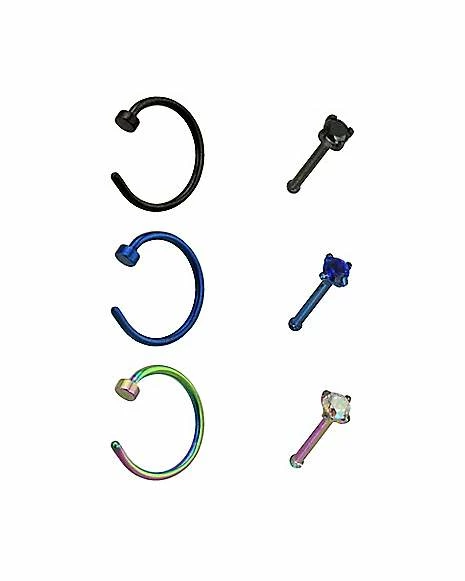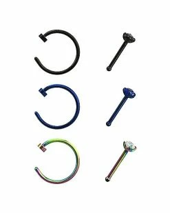 Brand new π Multi-Pack CZ Rainbow Hoop Nose Rings and Bone Nose Rings 6 Pack – 20 Gauge π