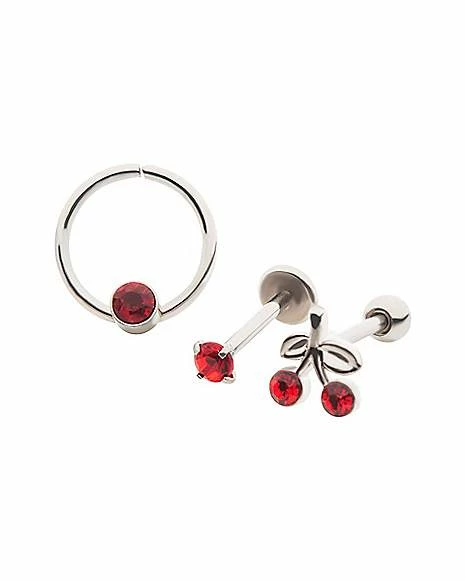 Flash Sale π₯° Multi-Pack CZ Red Cherry Cartilage Earrings 3 Pack – 18 Gauge π
