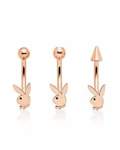 Brand new π Multi-Pack CZ Rose Goldplated Playboy Curved Barbells 3 Pack – 16 Gauge β