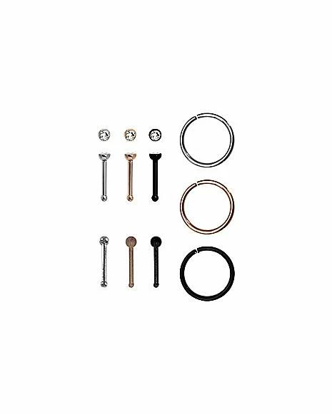 Top 10 π₯° Multi-Pack CZ Rose Goldtone and Black Hoops and Bone Nose Rings 9 Pack – 20 Gauge β