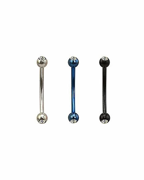 Best Pirce 🛒 Multi-Pack CZ Silver Blue and Black Curved Barbells 3 Pack – 16 Gauge 🧨