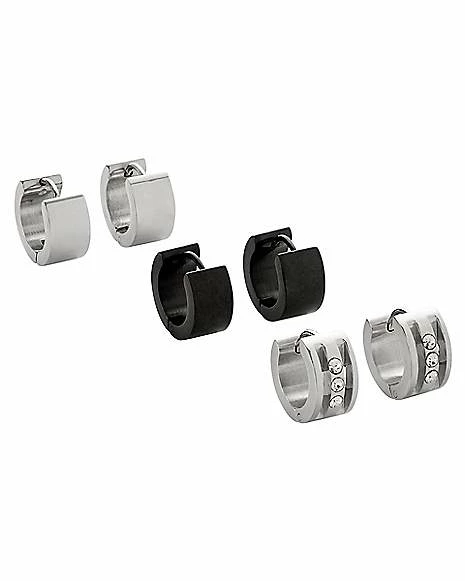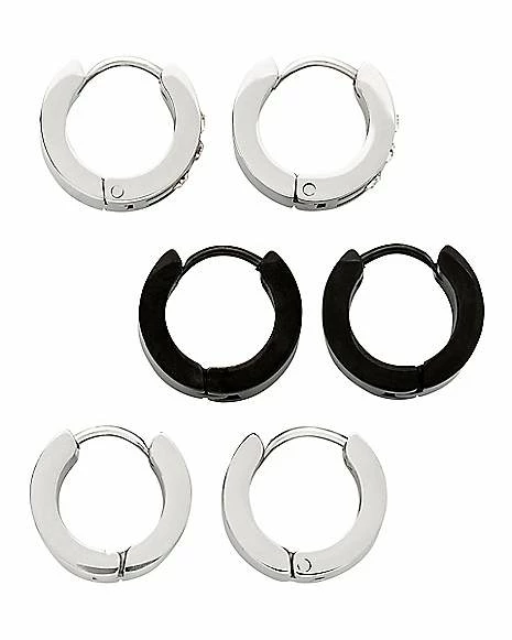 Buy ❤️ Multi-Pack CZ Silvertone and Black Huggie Hoop Earrings – 3 Pair ✨